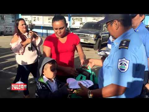 Visiblemente emocionados estudiantes, hijos de agente policiales del departamento de Carazo, recibieron uniformes y mochilas con sus respectivos útiles escolares para el inicio del año académico 2018.